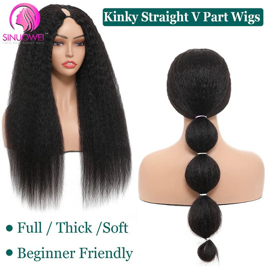 HD Quality Brazilian U V Part Wig 100% Human Hair No Leave Out Kinky Straight Wig For Women V Part No Glue Natural Color Human Hair Wig